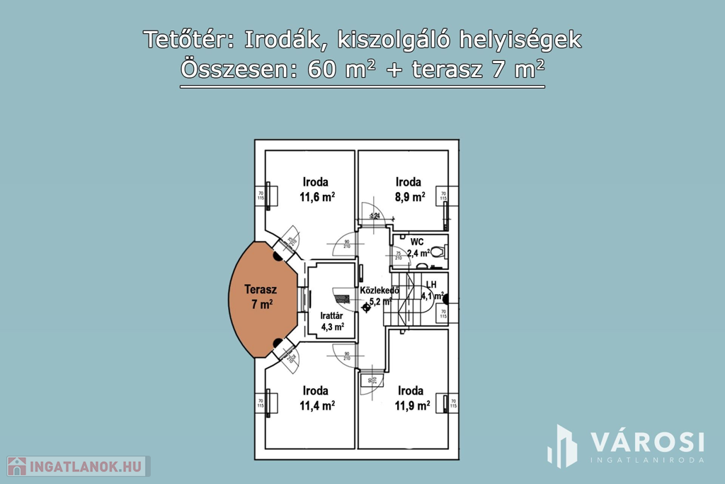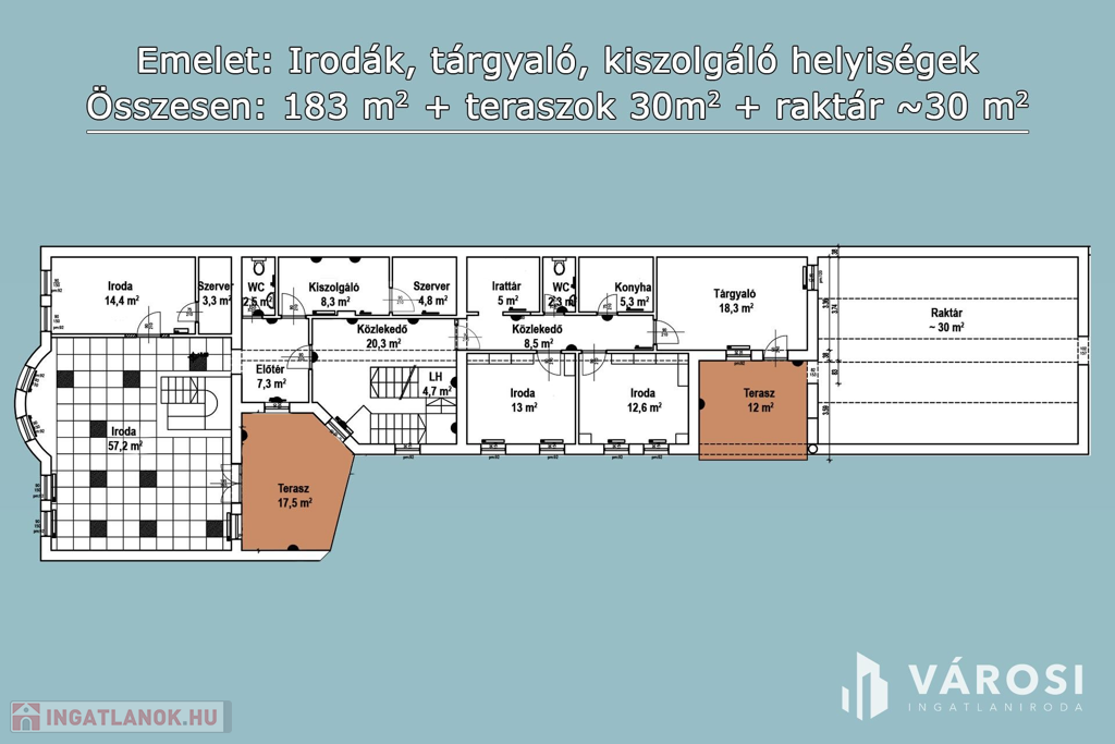 Jelenleg iroda funkcióra van kialakítva, de ez az új bérlő igényei szerint akár módosítható.