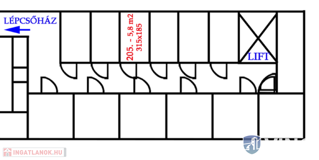 - 6 m2 – bruttó 28.900 Ft/hó (3 havi kaució)