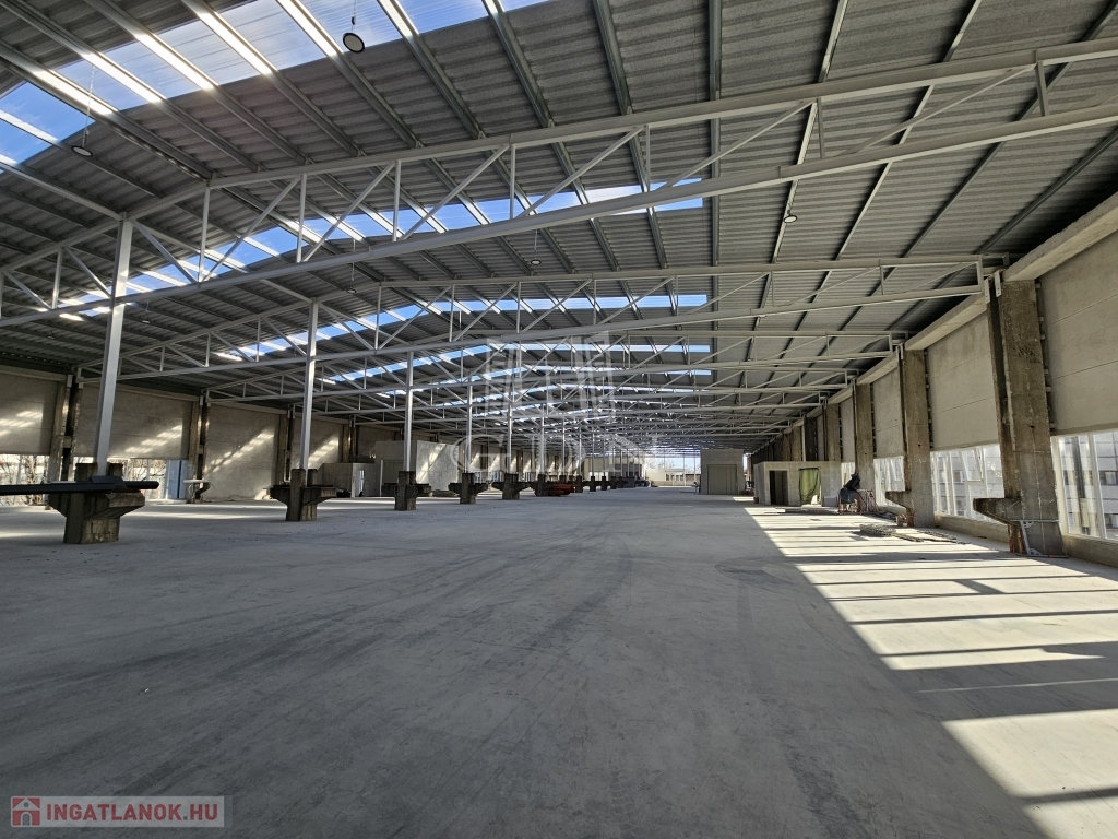 A tetőablakok és az oldal ablakok miatt a raktár nagyon világos. A raktár belmagassága 6-8 m.