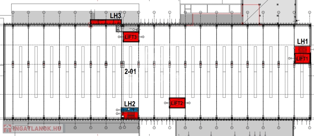 Az emeleti NAGY TEHRBIÁSÚ raktár, 3 db 5000 kg. személy + targonca + autó befogadására alkalmas teherlifttel rendelkezik.