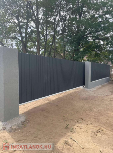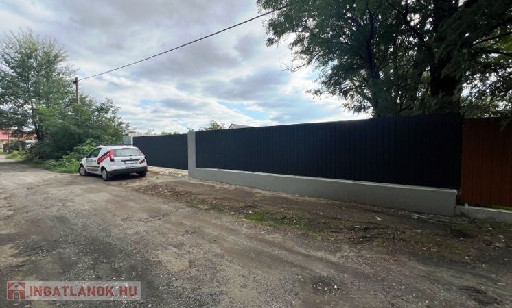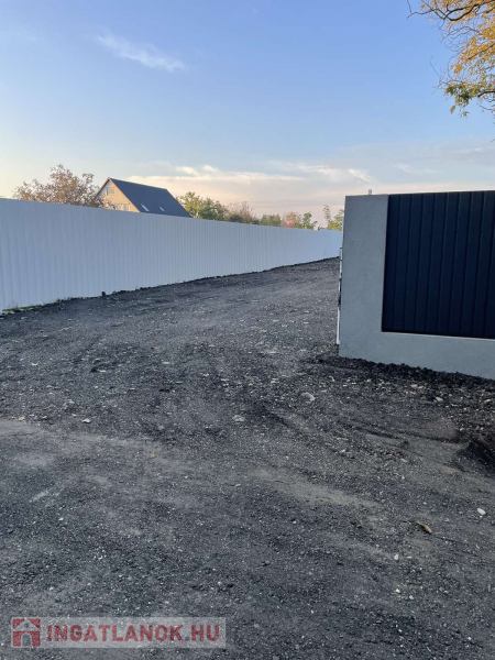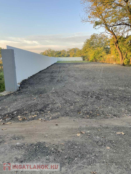 16méter széles, teljesen bekerített, 6méteres nagykapuval,martaszfalttal.