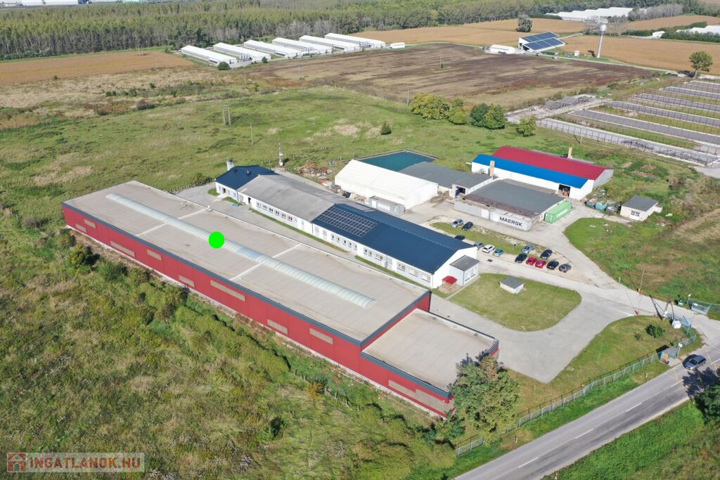A Győri Ipari Park, jól megközelíthető részén, 2012-ben épült, 839 m2-es (780 m2-es fűthető raktár csarnok, 58 m2-es iroda/szociális felület), gyártó/raktár csarnok eladó.