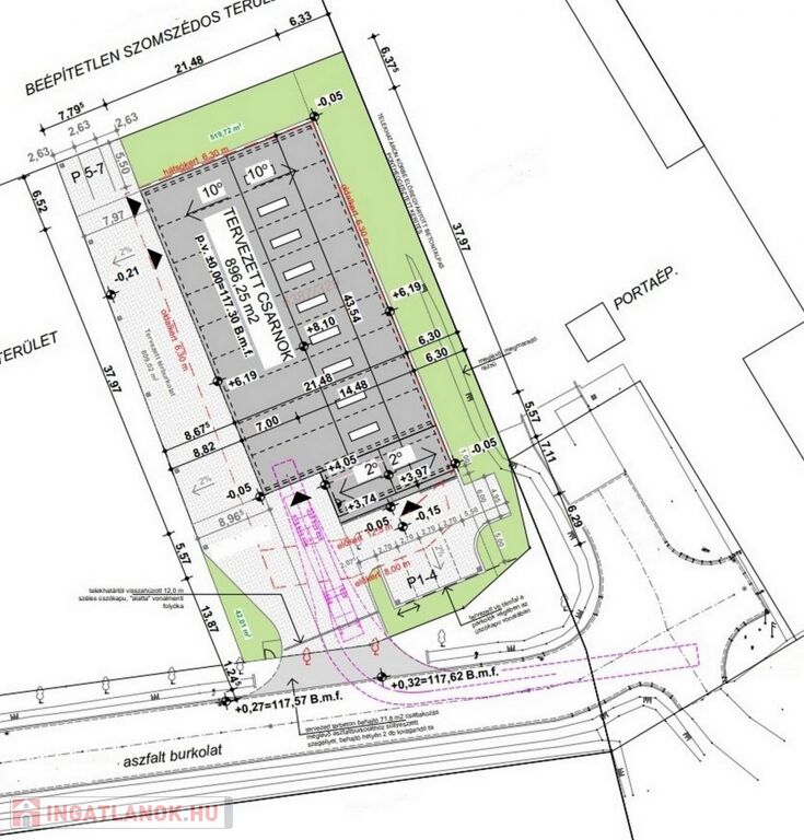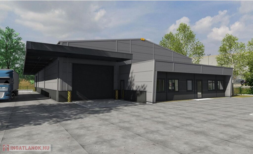 Győr Nemzetközi Ipari parkjában IPARI, LOGISZTIKAI, RAKTÁROZÁSI, KERESKEDELMI célra alkalmas Gipe (Ipari) ÖVEZETBEN, 2313m2-es telken elhelyezkedő, új építésű, 5,45 m tiszta belmagasságú, 870 m2 alapterületű (796 m2 raktár/gyártó csarnok, 45 m2 iroda, 29 m2 szociális rész) ipari létesítmény 2025. második negyedévétől kiadó.