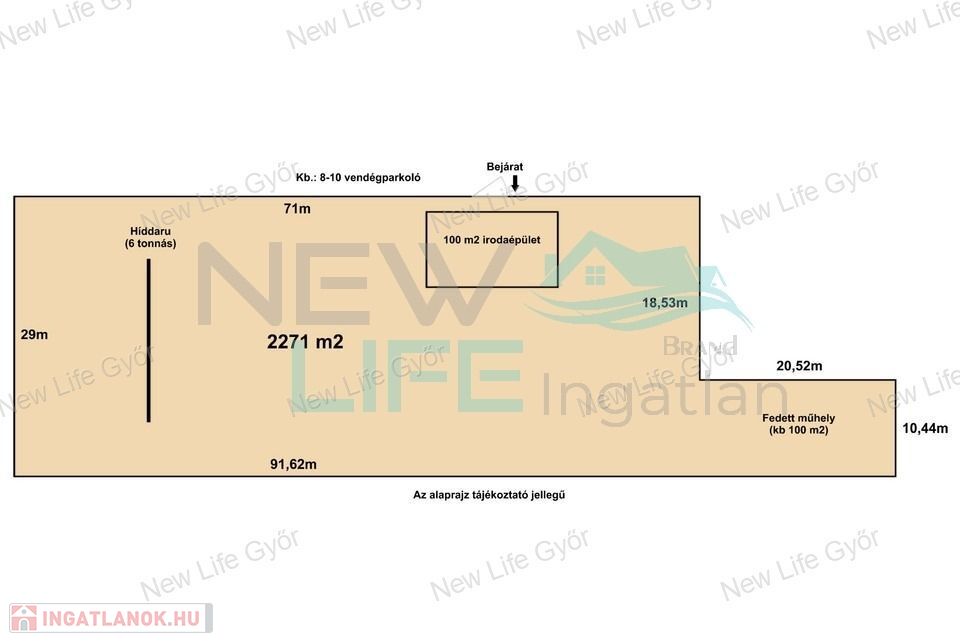Telekterület: 2271 m2, egy szendvicspanel irodaépület áll rajta, kb. 100 m2.