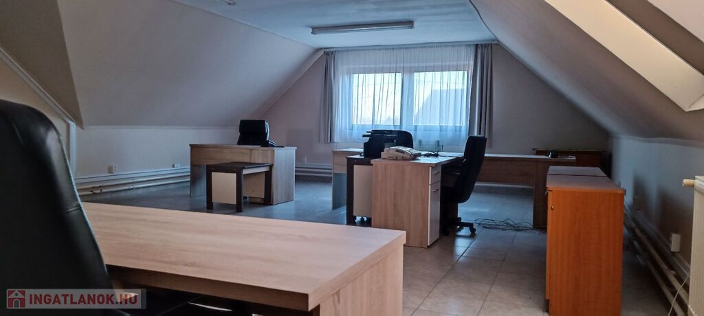 Az emeleten 2 iroda ( 60 m2 és 75 m2) is kiadó, ahol mosdó és egy konyha külön található.