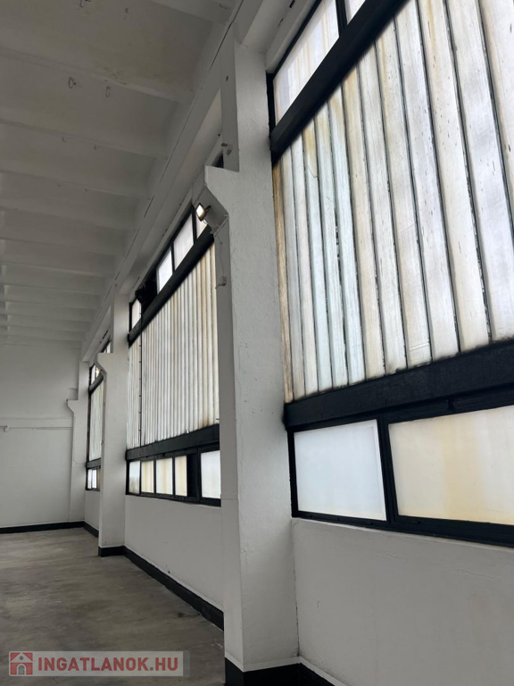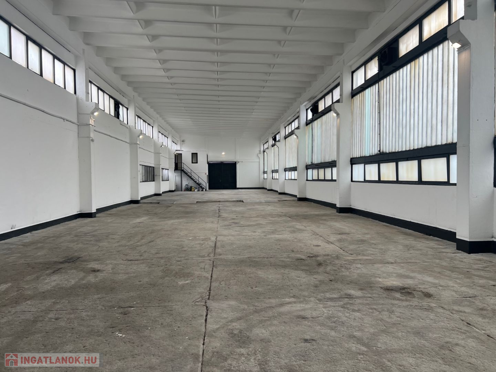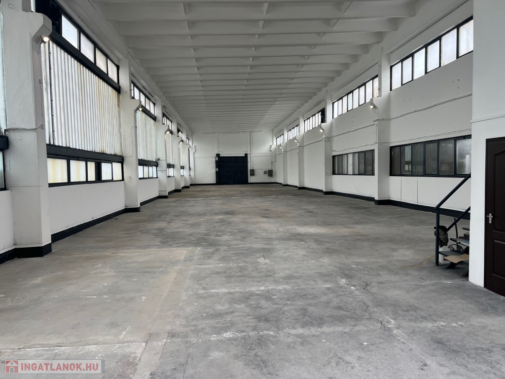 Belmagasság: 7,8 m, 12×55 m-es épület, ipari áram (3x63A), nagy teherbírású padozat.