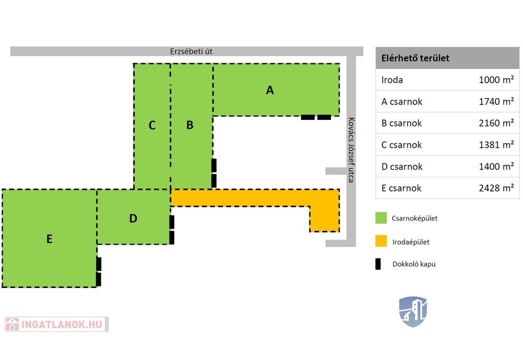 Jelenleg az A csarnok kivételével a többi terület szabad: