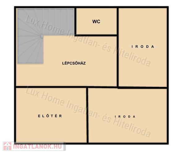- Az alsó szinten található egy 28 nm-es kisebb iroda, közös mellékhelyiséggel melynek bérleti díja havonta 50.000 Forint + rezsi költség.