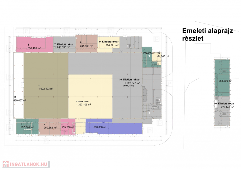 6-os bérlemény: Az ingatlan délkeleti sarka bérelhető, amely 5 méteres belmagasságú, szerződéskötéstől számított 45 napon belül költözhető.