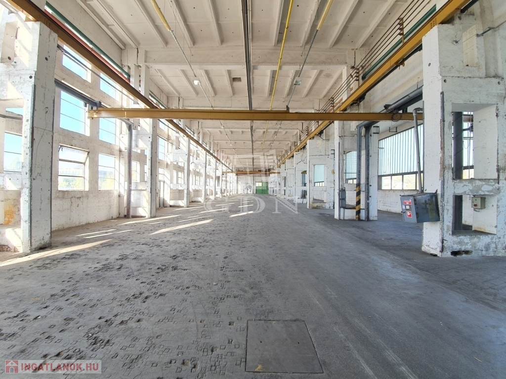 Az ipari csarnok belmagassága 8,4m, összesen 3db szintbeli ipari kapuval (4m x 4m), illetve 3db híddaruval rendelkezik melyek jelenleg ugyan nem használhatók, de üzembeállíthatók. A csarnok fűtéséről gázüzem sötétsugárzók gondoskodnak.