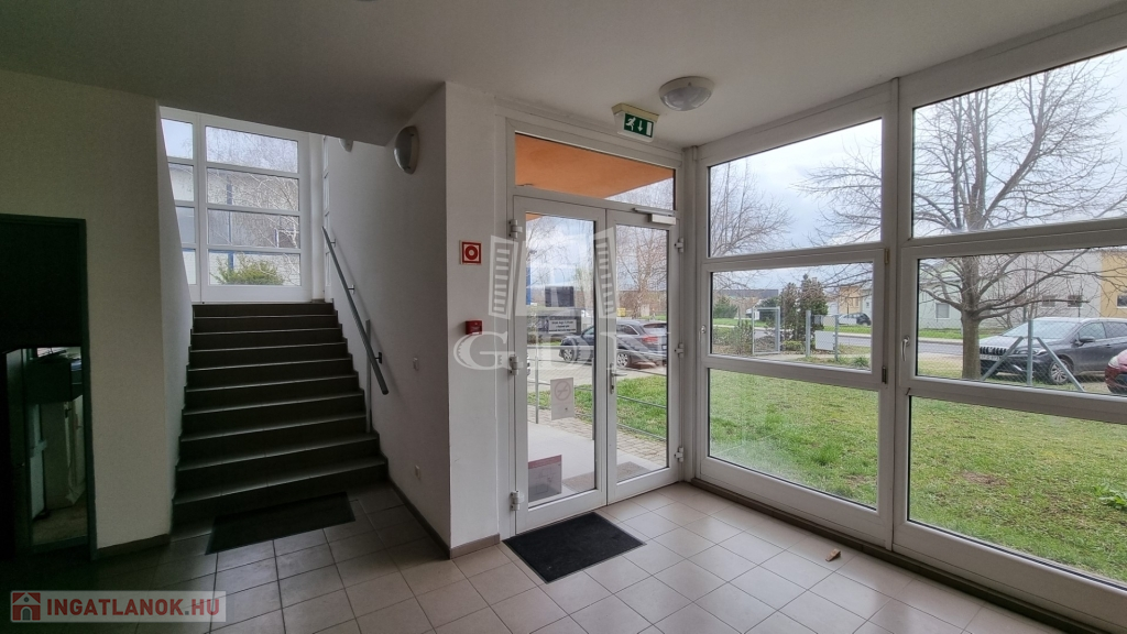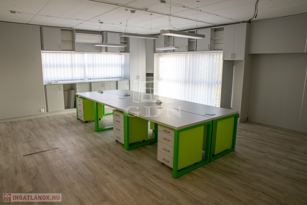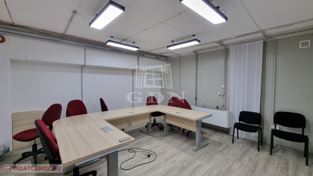 A csarnokhoz bérelhető egy újszerű állapotú, első emelti, klímás, 45 m2-es irodahelyiség közös használatú WC/mosdóval és teakonyhával. Igény esetén tárgyalóhelyiség is bérelhető.
