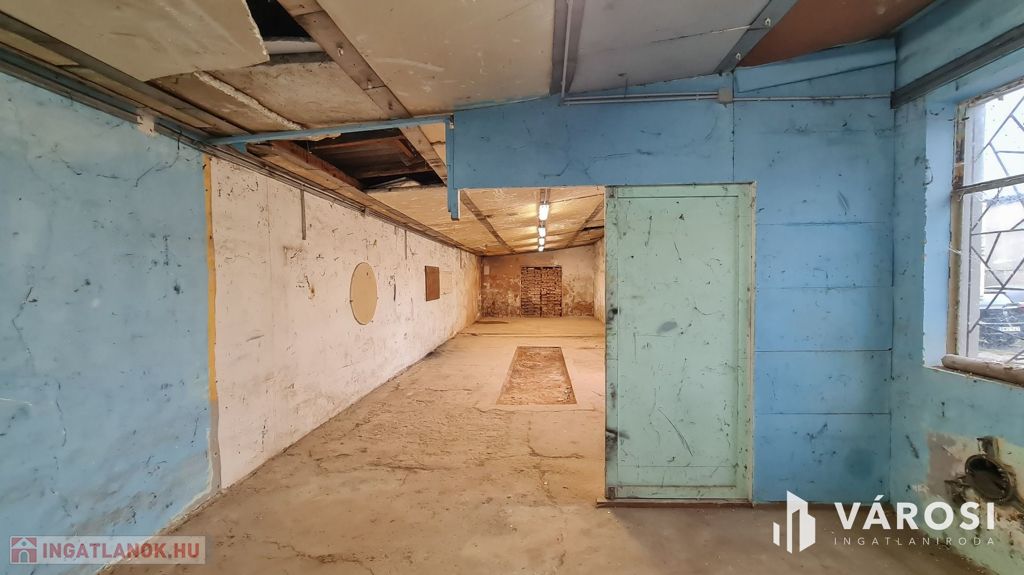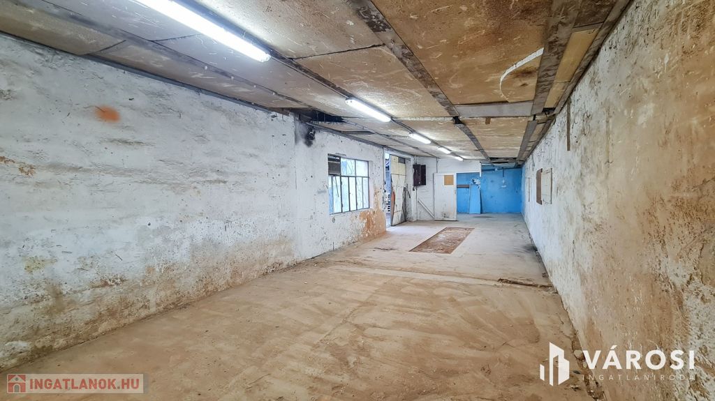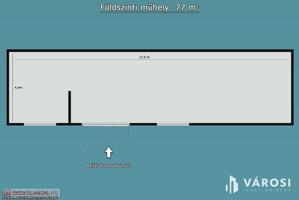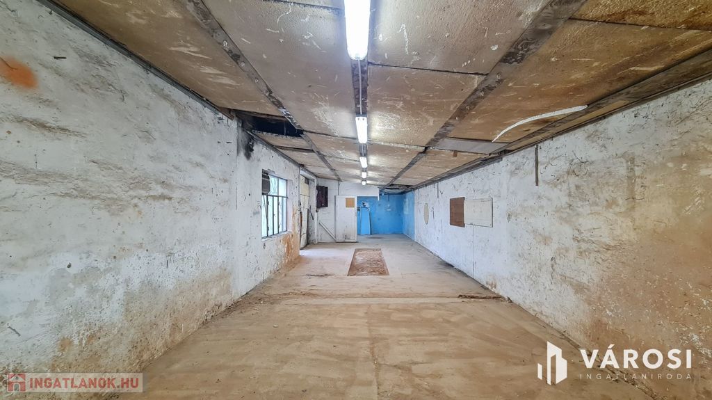 A raktár belső mérete: 17,5 X 4,4 méter. A belmagasság: 240-280 cm.