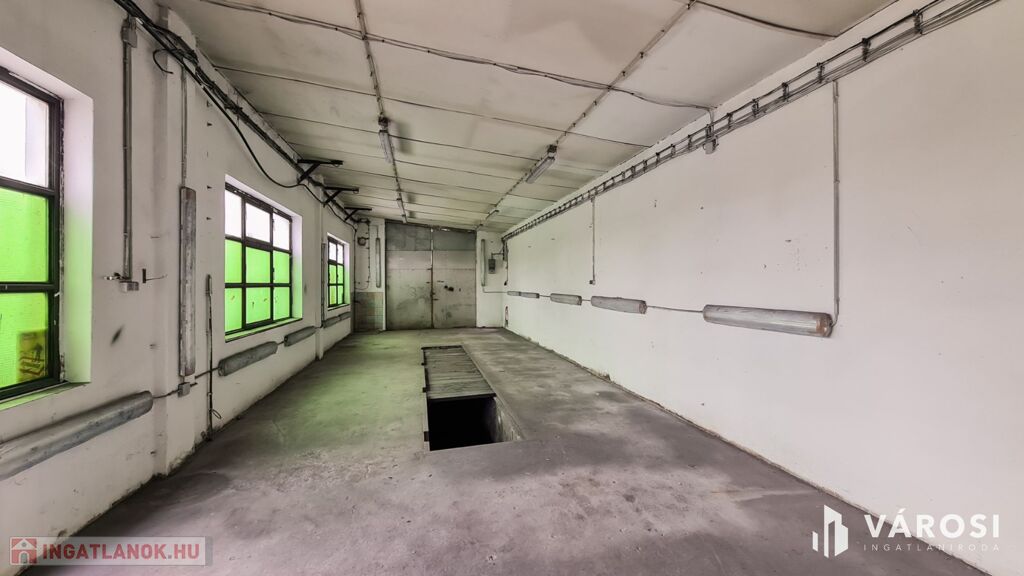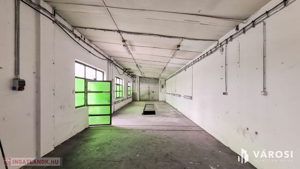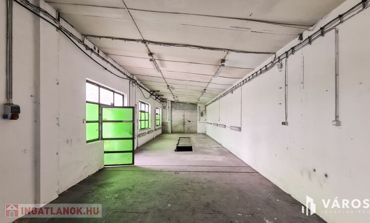 Beton burkolat épületen belül, 3X32 Amper ipari áram és vízóra van, csatorna nincs.