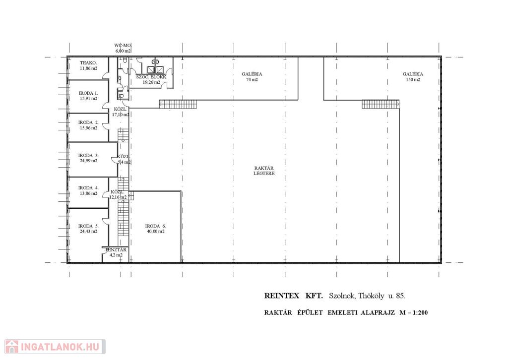 Kiadó kb 1000 nm-es raktárépület és hozzá tartozó emeleti kb 500 nm-es irodaépület irodákkal, bemutatóteremmel, szociális helyiségekkel, öltözőkkel. Belvároshoz közel, ipari területen az M4 autóúttól néhány kilométerre. Ideális raktározásra, logisztikai központnak, kereskedelmi lerakatnak.