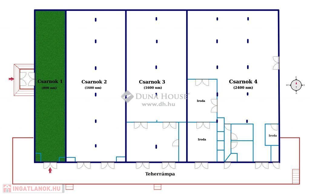 Jelen hirdetés egy 800 nm-es csarnok részre vonatkozik, amely kiválóan alkalmas kis és nagy kereskedelmi, raktározási tevékenység részére. A csarok egybefüggő, egy légtérű és kb 50 nm.-es könnyűszerkezetes irodarésszel rendelkezik. Amennyiben nagyobb méretű csarnokra van szüksége, a négy rész akár össze is nyítható. Fizikai méretei 12,5 m x 65 m.