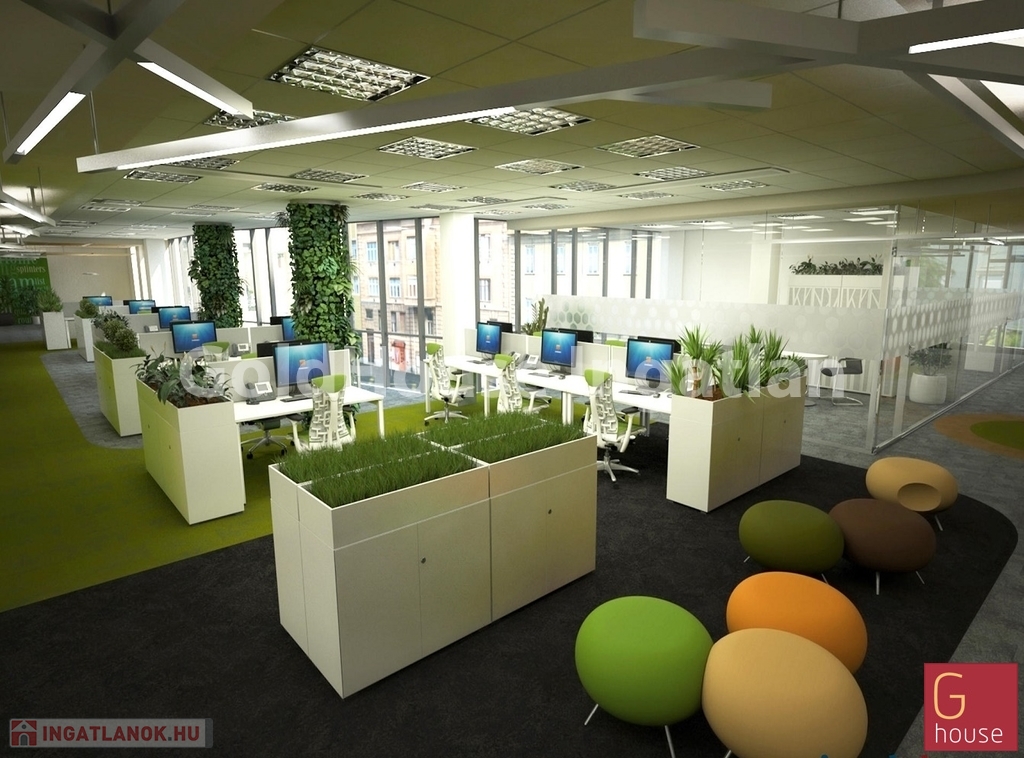 A modern irodaterületek nagyon világosak, optimális mélységűek, amelyek nagyobb egybefüggő irodaigények kiszolgálásra is alkalmasak.
