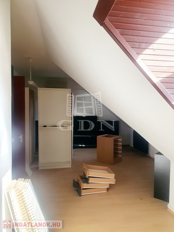 Hosszútávú bérbevételre kínálok egy irodaépületben található tetőtéri, kiváló elosztású, részben bútorozott irodát.