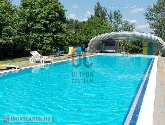 és a csodálatosan gondozott kertben feszített víztükrű medence (8X16m).