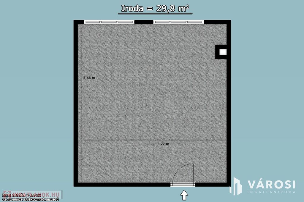 Az irodaterület 1 nagy helyiségből áll, 4 ember kényelmesen elfér benne.