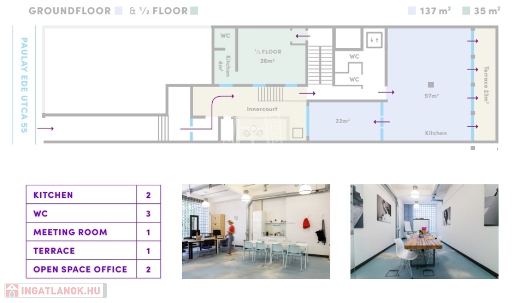 Elsősorban az egész épületet szeretné a szolgáltató bérbe adni,de az emeletek külön-külön vagy kombinálva is bérbe vehetőek.