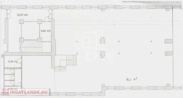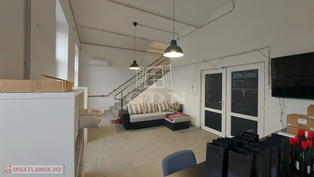 - Beosztása kiváló, a nagyteremből, három kisebb helyiség(tárgyaló),felszerelt konyha, és két mellékhelyiség nyílik.