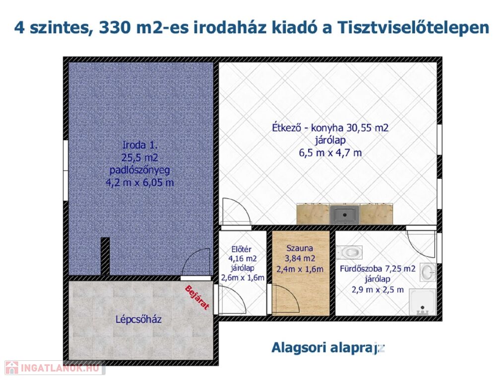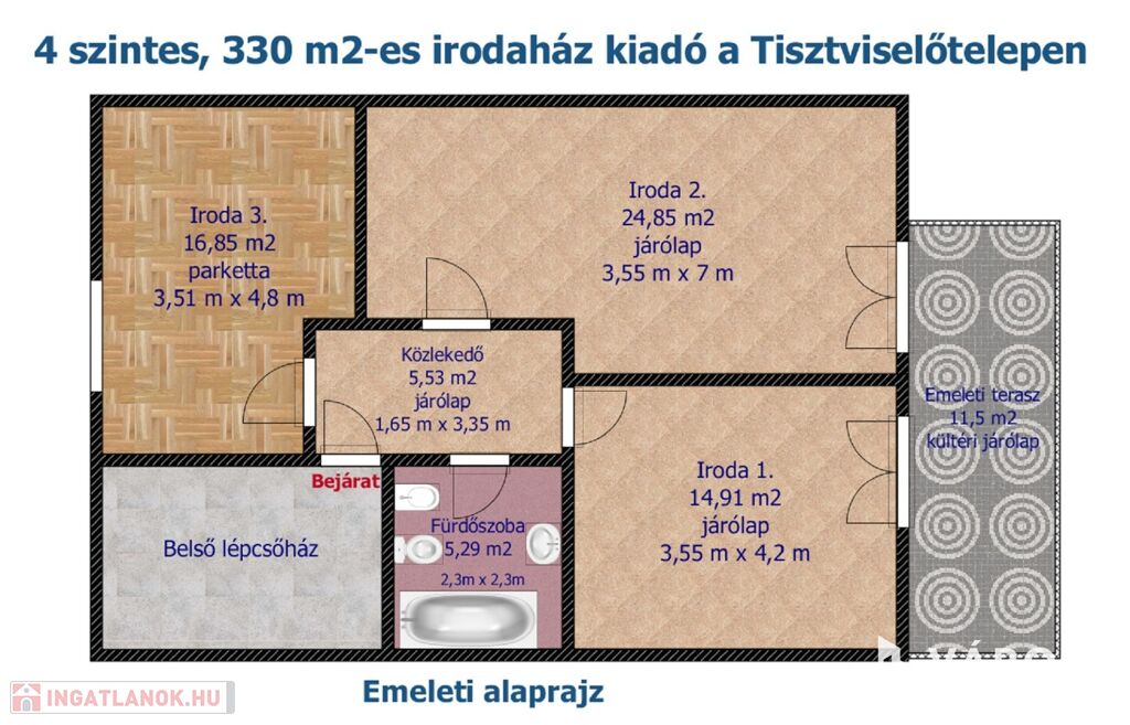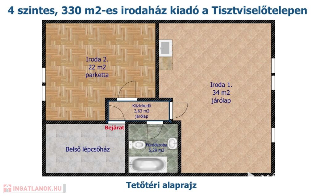 NÉGY SZINTES, 330 M2-ES ÖNÁLLÓ IRODAHÁZ KIADÓ A TISZTVISELŐTELEPEN