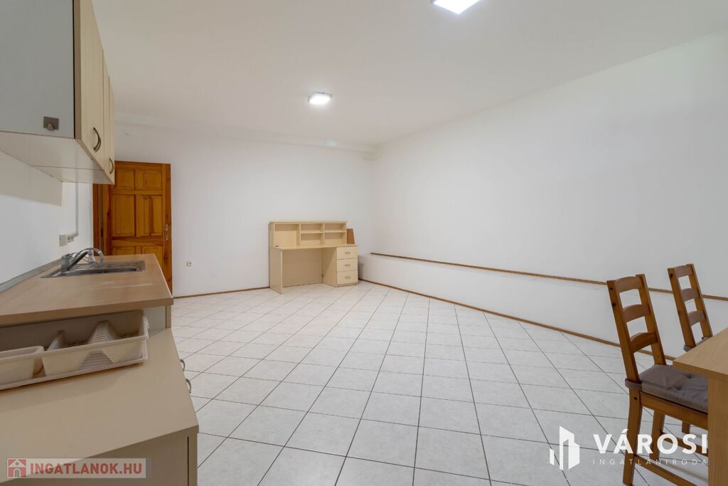 Az alagsorban tágas étkező-konyha áll rendelkezésre, amely akár 9. irodaként is használható, sőt a szauna is beüzemelhető.