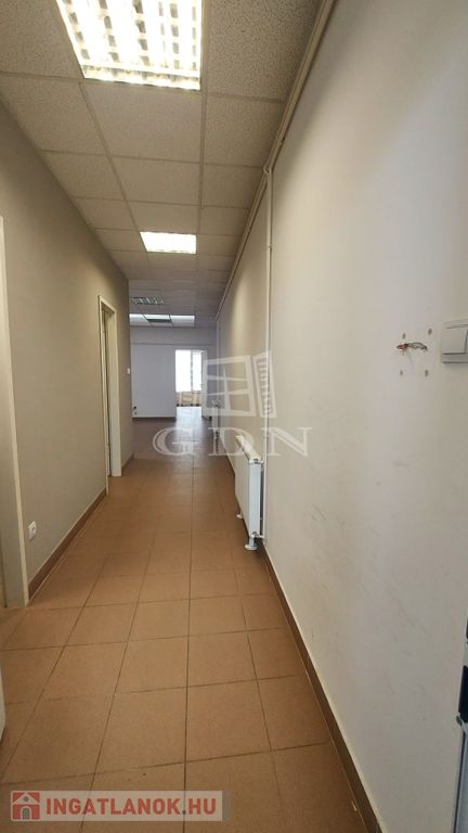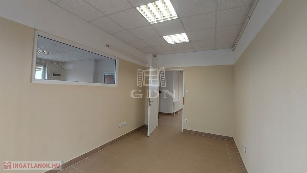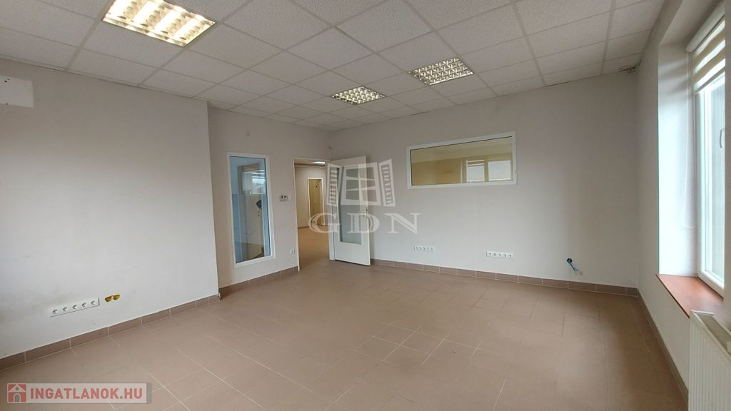 Az ingatlanba lépve egy folyosón keresztül jutunk el egy tágas fogadótérbe, (recepció)., ahonnan még három külön helyiség kapott helyet,így akár két vagy több cég is bérelheti. A konyha és a mellékhelyiségek közös használatúak.