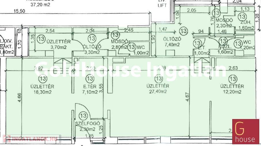 Az üzlethelyiség jól tagolható belső térrel rendelkezik, amely számos üzleti tevékenységhez rugalmasan alakítható.