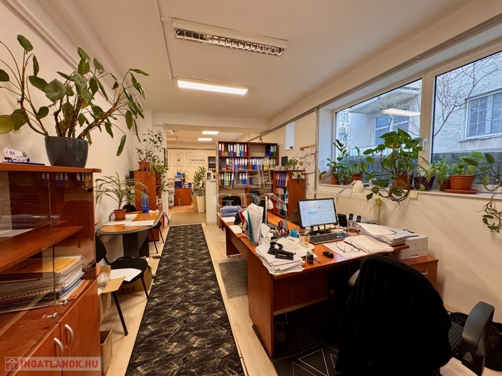 Helyiségei: recepció/fogadó tér melyből 2 külön bejáratú irodahelyiség nyílik, valamint egy teakonyha és egy zuhanyzó+WC.