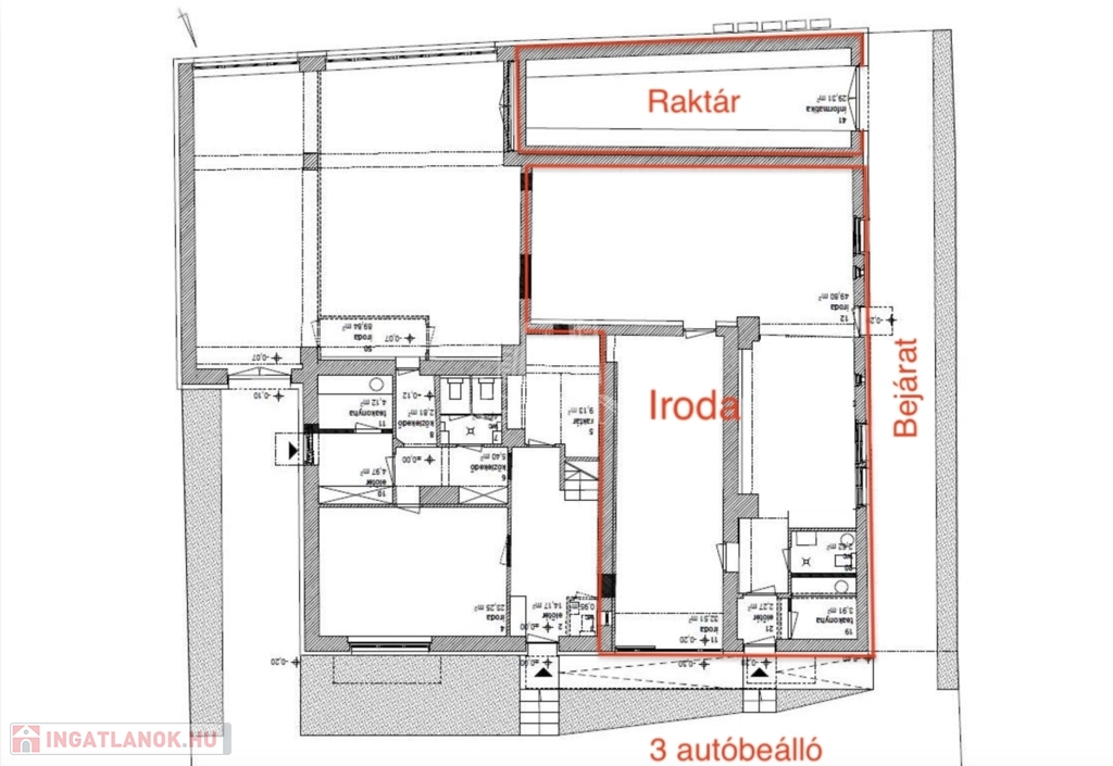 Az iroda mögött egy külön bejáratú békázható 30m2-es raktárhelyiség.