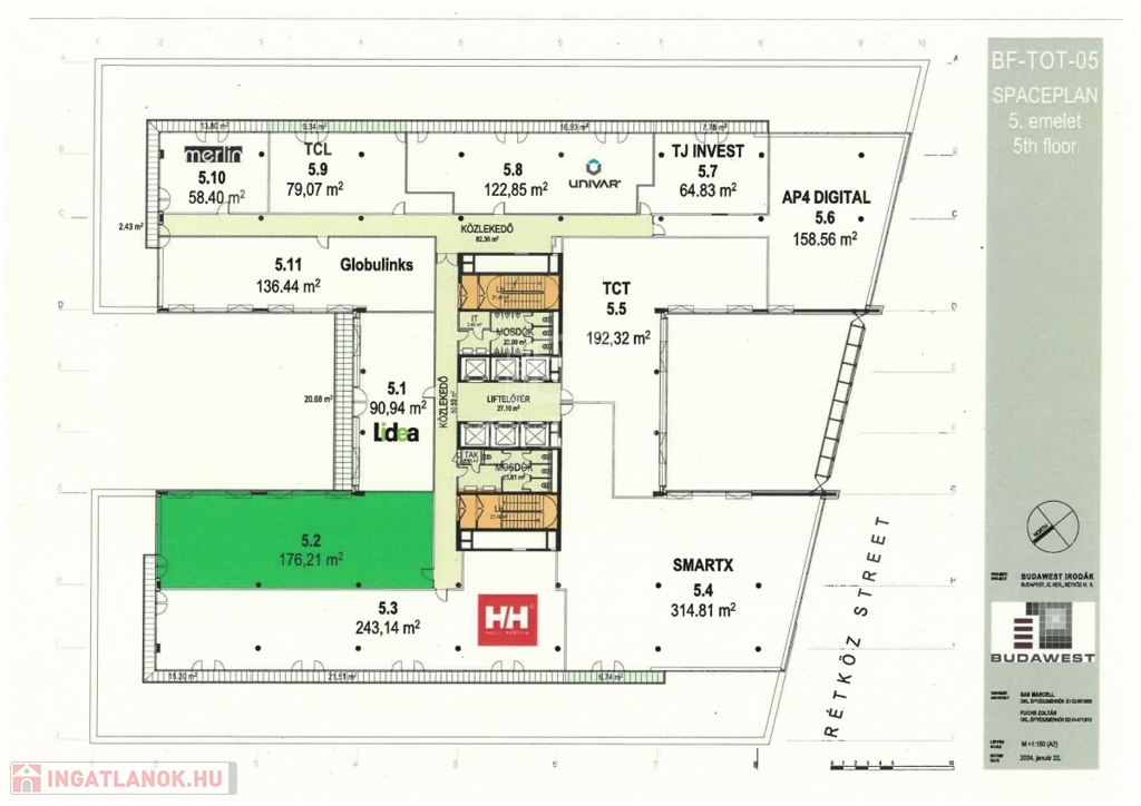 Nettó irodaterület: 176 m2