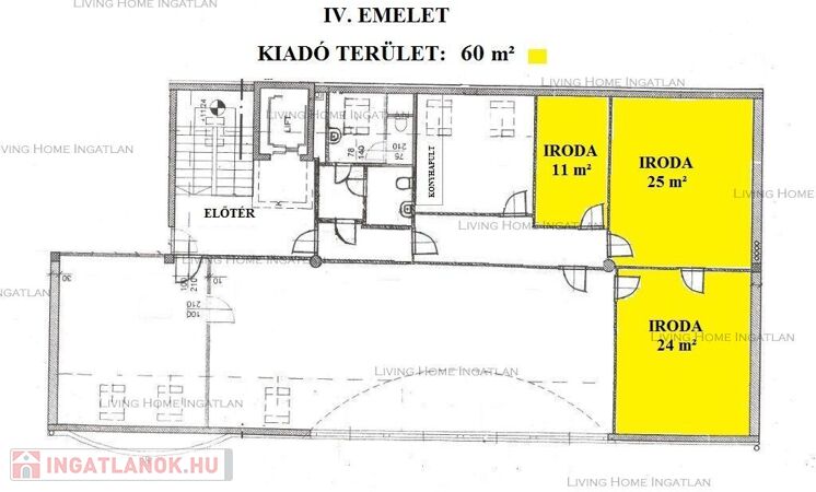 A teljes szinten belül egy vagy több iroda is bérelhető: 60 m2, 130 m2, 166 m2, 202 m2 terület.