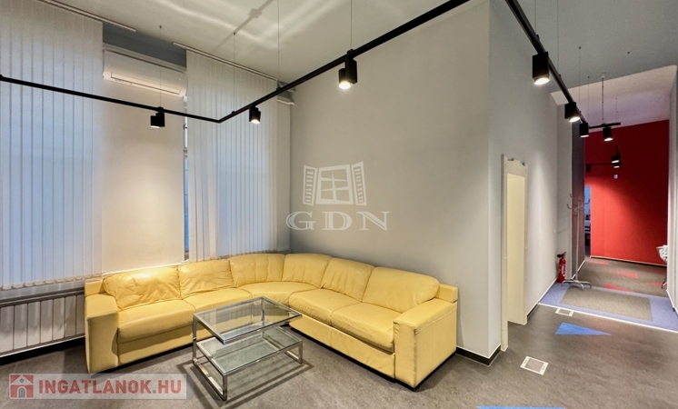 Az emeleti szint jelenleg megosztott kettő irodával, melyből a 100m2-es rész képezi a bérlemény tárgyát.