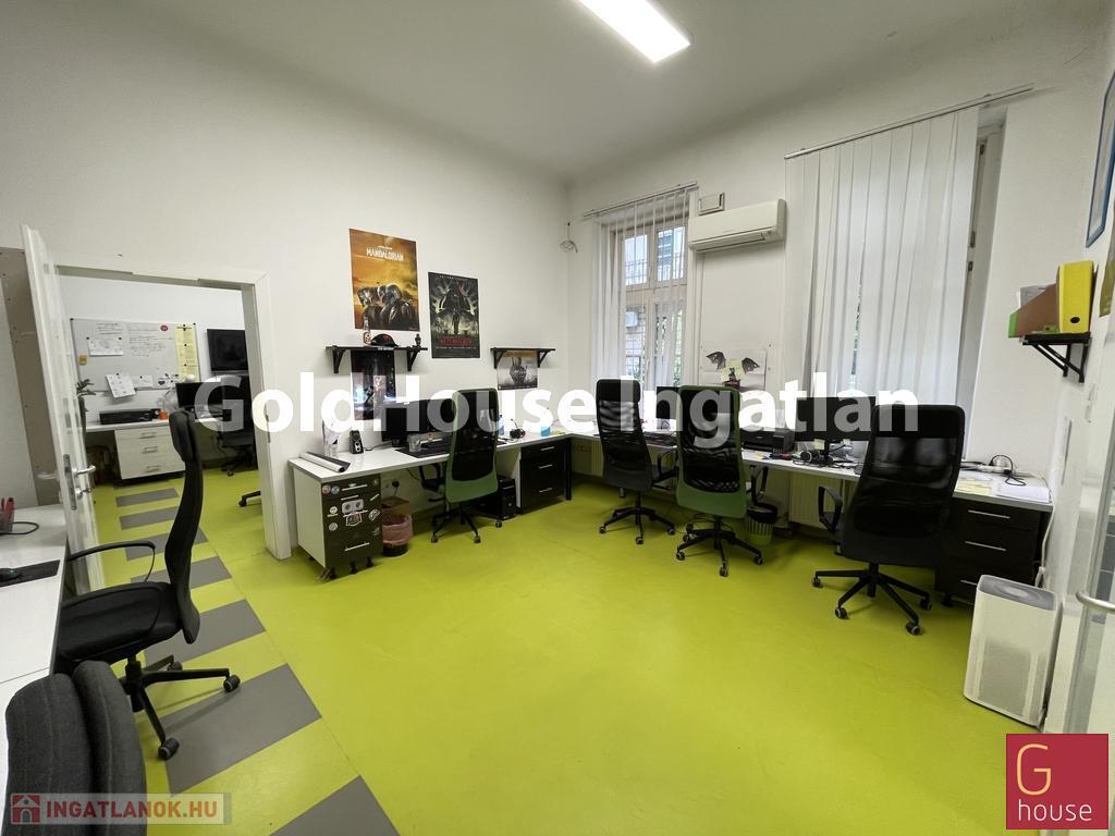 Az irodák, három lakás átalakításával jöttek létre, melyek külön bejárattal is rendelkeznek, rugalmas hasznosítást kínálva. Az egység négy világos irodahelyiséget foglal magába, melyek mindegyike egy rendezett, parkosított udvarra néz. A modern és energiahatékony működést a cserélt, hőszigetelt üvegezésű nyílászárók, a cirkó gázkazánnal biztosított radiátoros fűtés, valamint a klímaberendezésekkel megoldott hűtés garantálja. Az üzlethelyiség kényelmét egy étkezős, gépesített konyha és négy különálló, felújított mosdó biztosítja.
