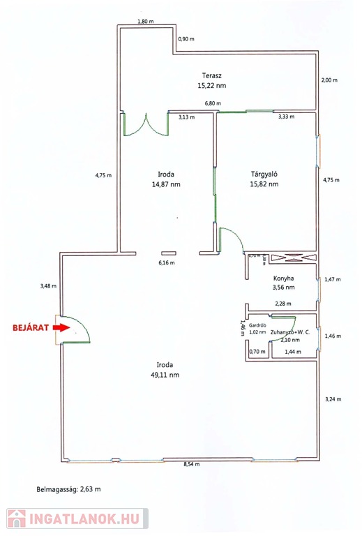közelében kiadó egy 86 nm alapterületű + 15,2 nm terasszal rendelkező iroda.