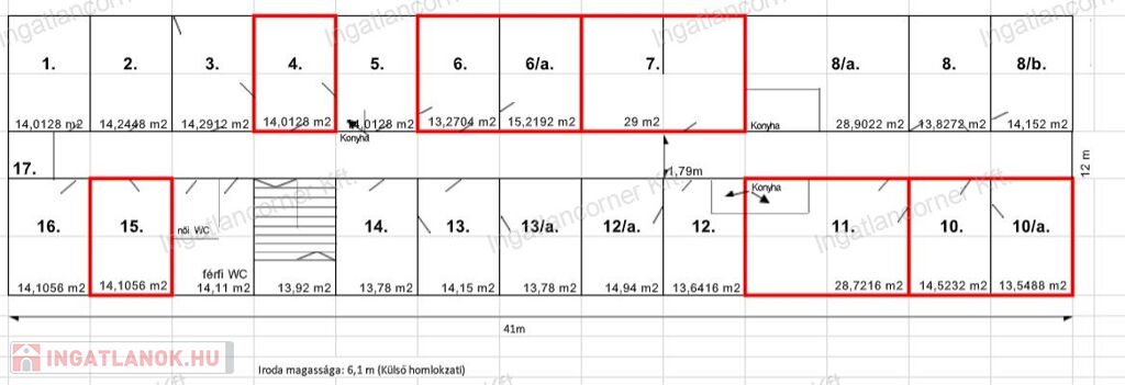 6. és 6/a iroda: 28,49 m² dupla iroda.