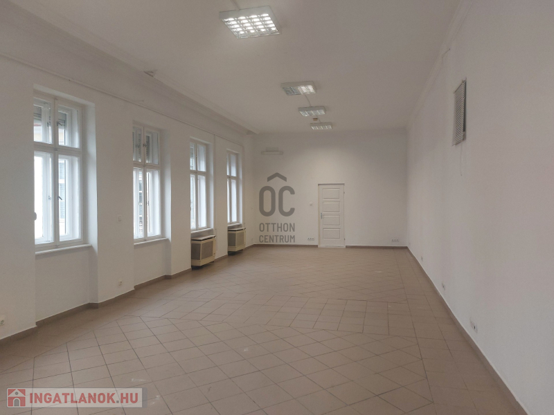 Egy légterű üzlethelyiség 70 nm és 12 nm-es terasz tartozik hozzá. Az üzlethelyiség az első emeleten található, klimatizált, alacsony rezsivel rendelkező, lépcsőházon keresztül közelíthető meg. Polgári stílusú, bármilyen üzleti tevékenységre alkalmas, akár irodának, bemutató teremnek, számítógépes cégnek, edzőteremnek, rendelőnek, nyelviskolának vagy más típusú üzleti tevékenységre is alkalmas lehet. Az Üzlethelyiség ablakai belső udvarra néznek, ahol parkolási lehetőség is rendelkezésre áll a bérlők és a vendégek részére. Belvárosi elhelyezkedése és forgalmas adottsága révén kiváló befektetési lehetőség . Bérleti szerződés minimum egy évre kötődik, kaució 2 hónap.