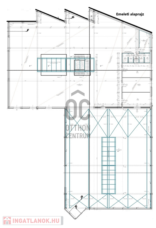 - emeleti részen (ö:495 nm ): üzlettér (421nm), 3 x17,7nm iroda, szociális helységek(10,3), gépészet (10,2 nm)