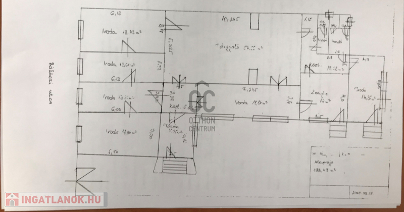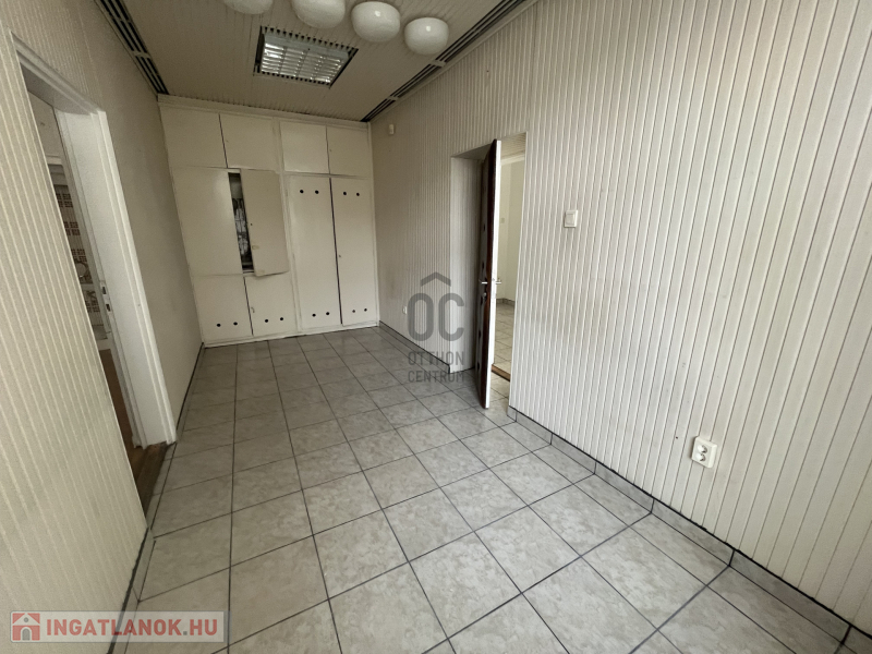 Fűtése gázkonvektor. Helyiségei: 19 m2, 13 m2, 13 m2, tárgyaló 54 m2 illetve fürdőszoba-wc, teakonyha és előtér.