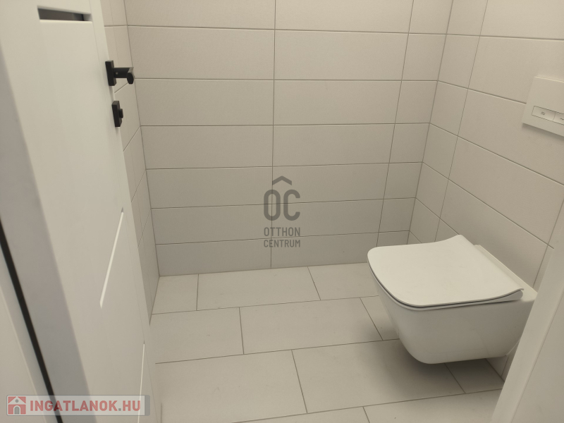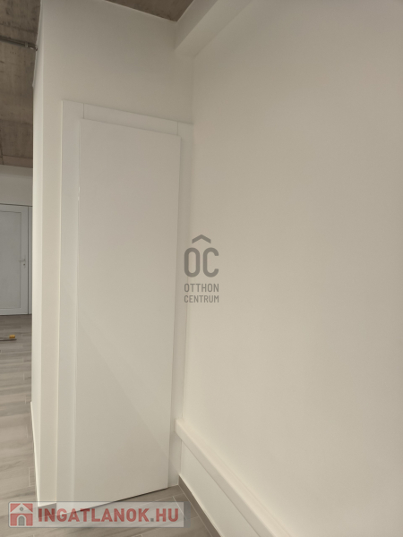 A kínált helyiség egy légtérben található, itt kapott helyet egy modern teakonyha is. A vizes blokk külön leválasztva , amely mosdót és dupla w.c-t tartalmaz.