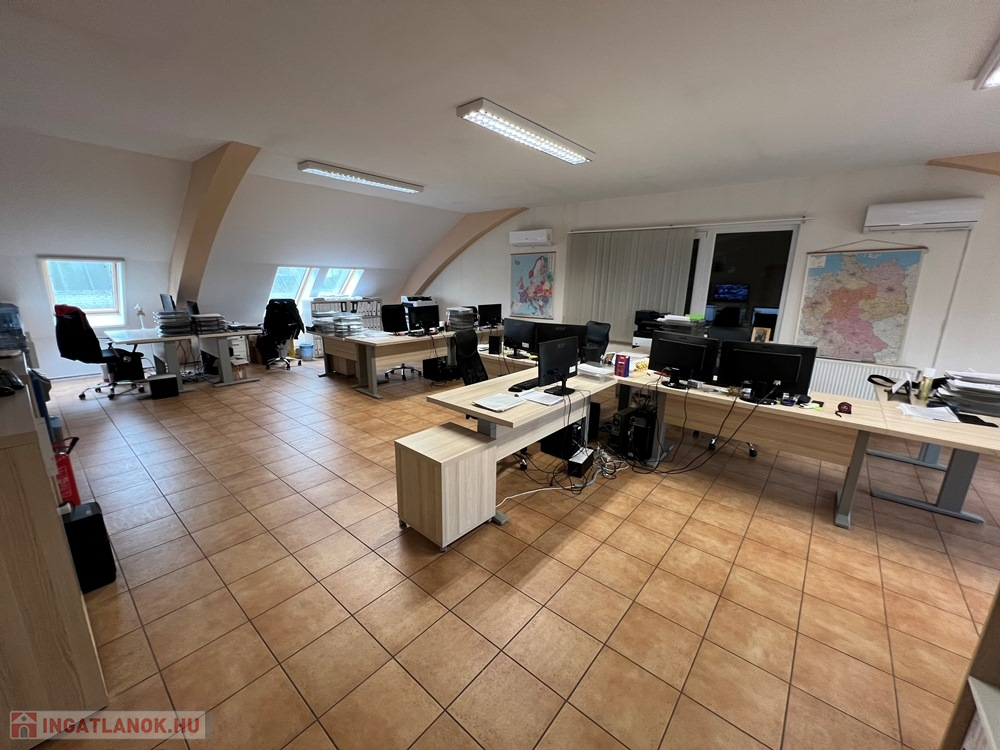 Győr-Szabadhegy kedvelt, könnyen megközelíthető részén, kereskedelmi-ipari környezetben, M1-es autópályáról, Ipari Parktól pár perces autótávolságra, kereskedelmi és ipari környezetben, jó állapotú épület első emeletén, 202 m2-es bútorozott, KLIMATIZÁLT irodaszint kiadó.