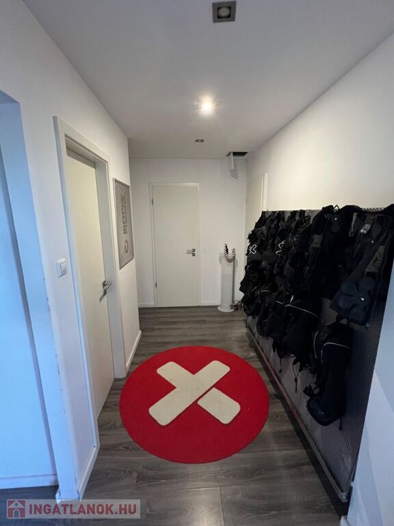 Az üzletbe cirk. 18 m2-es ügyfélfogadóba érkezünk, ahonnan nyílik a fő helyiség az üzlettér, ami cirk. 45 m2-es. Ezen kívül három zuhanyzó és ezekhez kapcsolódó öltözők és tárolóhelyiségek alkotják a 112 m2-es ingatlant.