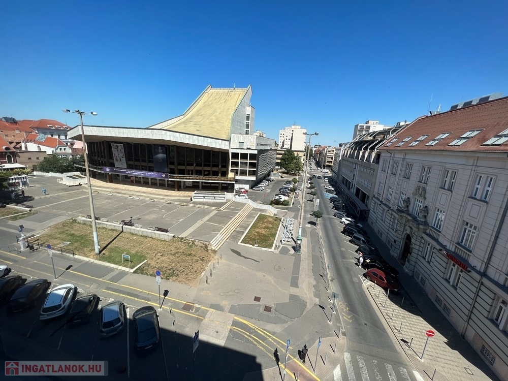 Győr-Belvárosának szívében, Baross úttól, Széchenyi tértől pár másodperces sétatávolságra, rendezett, tiszta irodaház 4. és 5. emeletén, nagy üvegfelülettel rendelkező, 18 m2-es bútorozatlan iroda, NEMZETI SZÍNHÁZRA való kilátással, közös tárgyaló használatának lehetőségével kiadó.