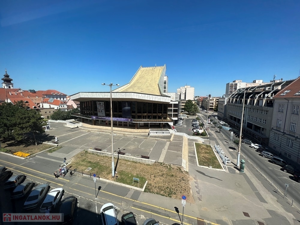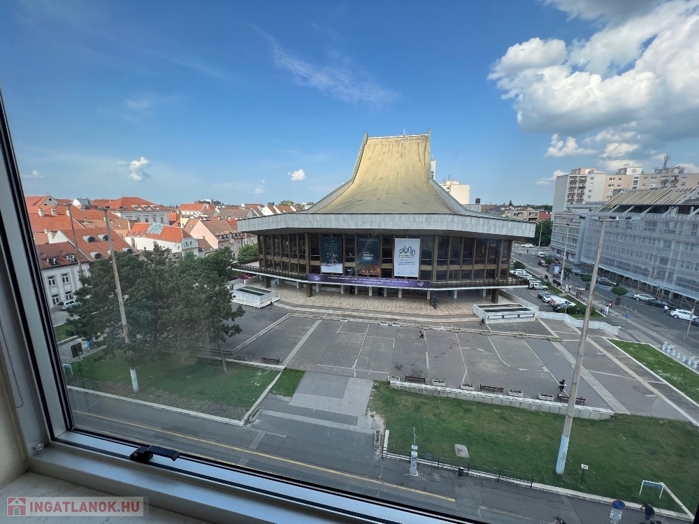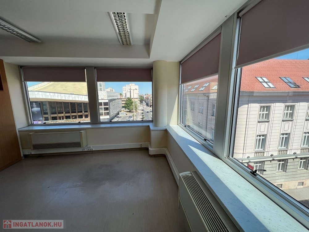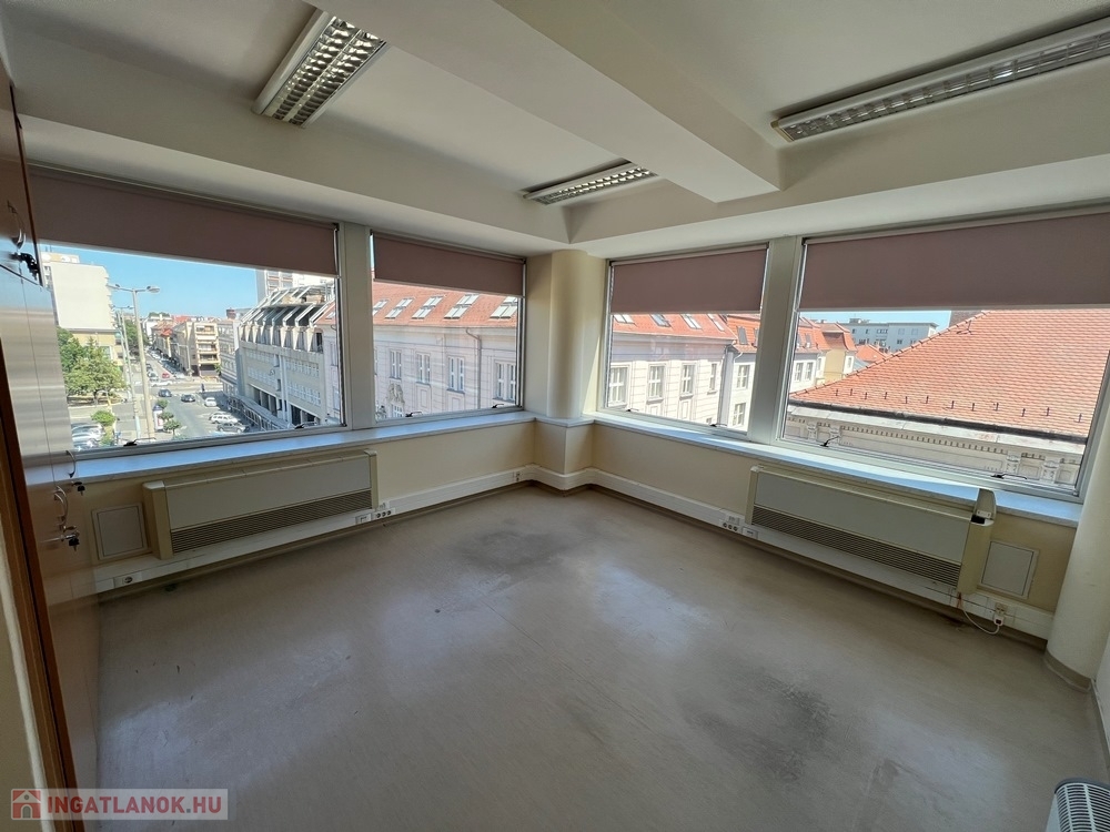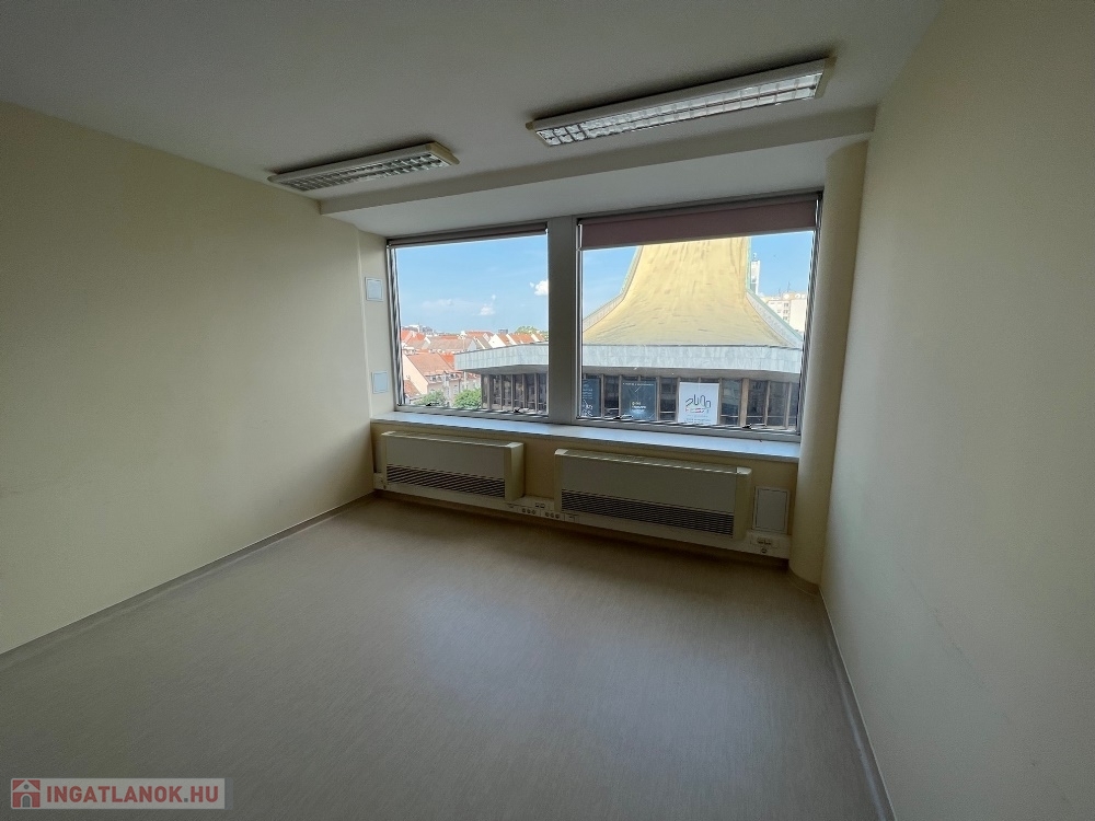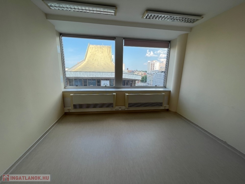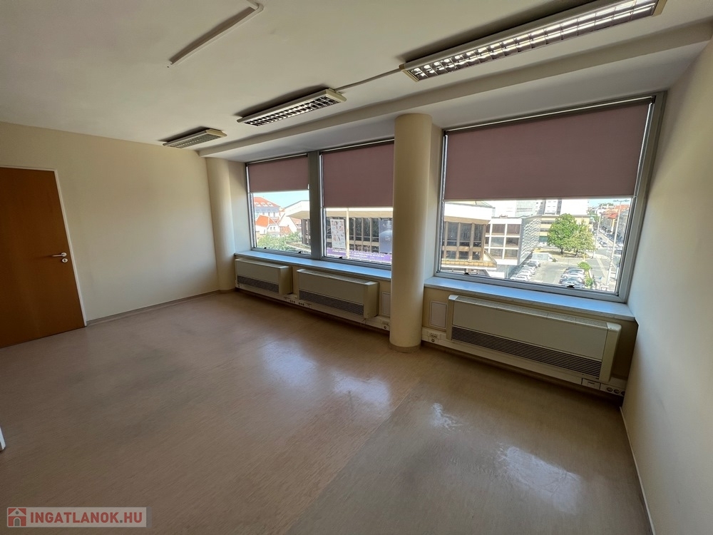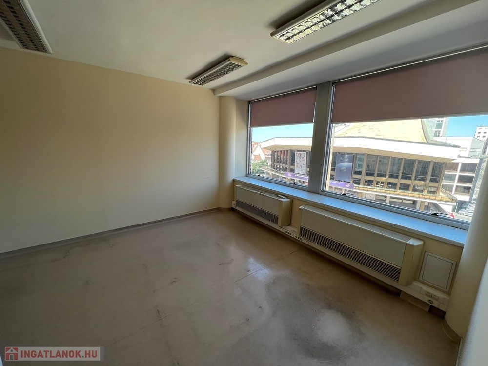 Győr-Belvárosának szívében, Baross úttól, Széchenyi tértől pár másodperces sétatávolságra, rendezett, tiszta irodaház 4. emeletén, nagy üvegfelülettel rendelkező, 18 m2-es bútorozatlan iroda, NEMZETI SZÍNHÁZRA való kilátással, közös tárgyaló használatának lehetőségével kiadó.