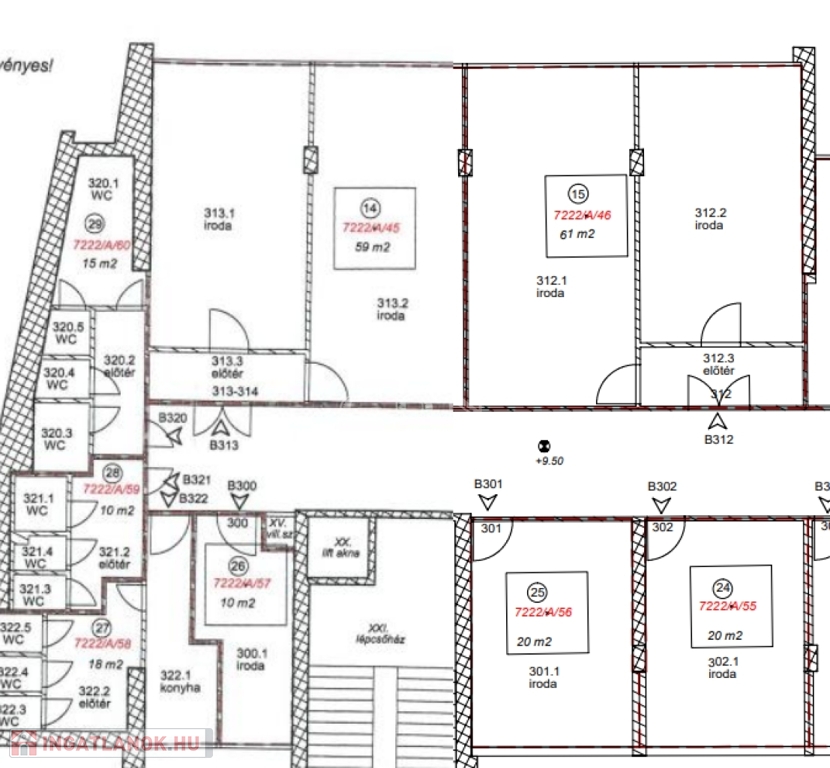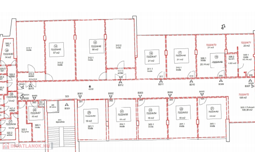 Az iroda a 3. emeleten található,teljes mérete 58 m2.