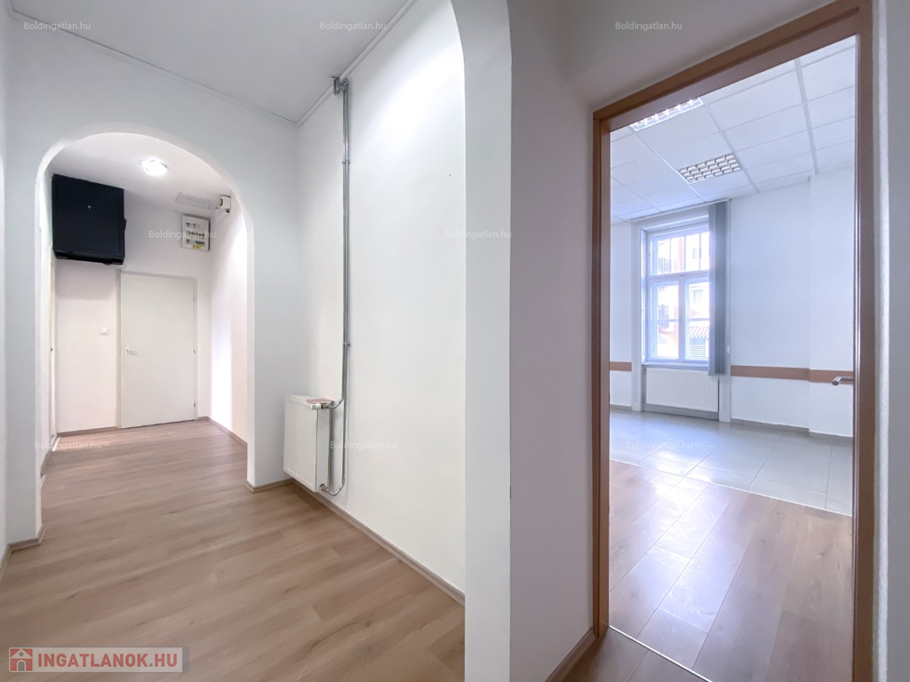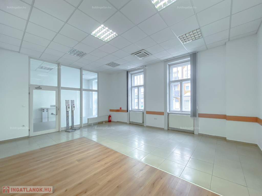 Kaposváron a belvárosban, a Fő utcában, kifejezetten frekventált helyen lévő 124,88 m2-es, akár azonnal is birtokba vehető 2 szintes irodaház, földszinten lévő, utcafronttal is rendelkező helyiségei hosszú távra kiadó. Az ingatlan földszintjén klimatizált ügyféltér, előtér mozgássérültek részére kialakított lifttel, 3 iroda, szerverszoba, wc-kézmosó, közlekedő, továbbá teakonyha, wc-kézmosó és udvari bejárattal rendelkező lépcsőházzal találhatóak, továbbá a lépcsőházból nyílik még a ház alatti - akár iratok tárolására alkalmas - pince is. Az épület fűtése Viessmann gázkazánnal megoldott, az irodák légkondicionálóval felszereltek, a zárt udvarban akár 15 személyautó parkolására is van lehetőség. Bérleti díj: 350.000.- Ft/hó + ÁFA + rezsi + 2 havi kaució