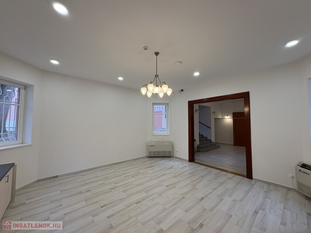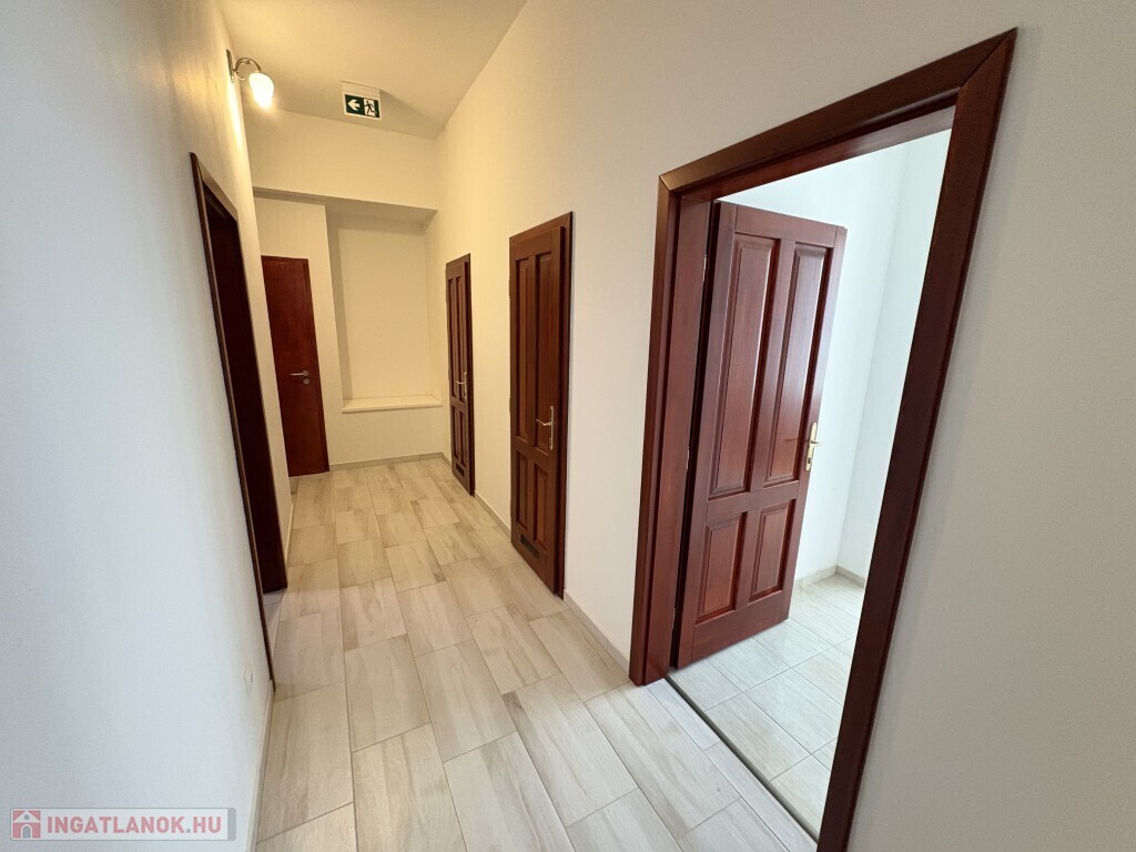 Kaposváron a belvárosban - a Bajcsy-Zsilinszky utcában - 2025-ben igényesen felújított 459 m2-es 2 szintes - akár azonnal is birtokba vehető - exkluzív irodaház hosszú távra kiadó. Az épületben a földszinten (285,58 m2) elegáns recepció-előtér, tárgyaló-ügyféltér, 5 szoba, 4 fürdőszoba-wc, wc, konyha-étkező, tároló és közlekedő helyiségek találhatóak. Az emeletre (173,22 m2) kényelmes lépcső vezet fel, ahol folyosó, előtér, 3 szoba, 2 fürdőszoba, wc, raktár, takarítószeres helyiség, valamint egy exkluzív, részben fedett terasz kerültek kialakításra. Az épületnek a fűtését korszerű hőszivattyú szolgáltatja faincolokkal. valamint az irodákban légkondicionálók is felszerelésre kerültek, továbbá riasztó, füstjelző, valamint kamerás riasztó rendszer van kiépítve. Az épület zárt udvarában 6 db személyautó részére parkolóhely van kiépítve, amelyek használatát a bérleti díj tartalmazza. Bérleti díj: 823.880.- Ft + rezsi + 1,50.- Euro/m2 + ÁFA üzemeltetési díj + 2 havi kaució