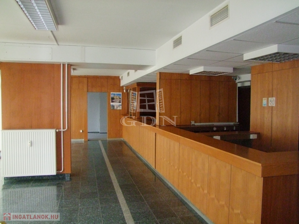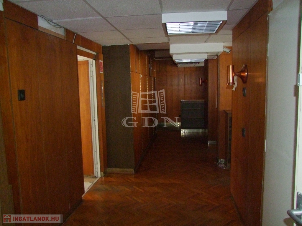 A külön bejáratú emeleti részen irodák, konyha és szociális helyiségek vannak kialakítva. Alapterülete 190 m2, riasztóval és klímával felszerelt.