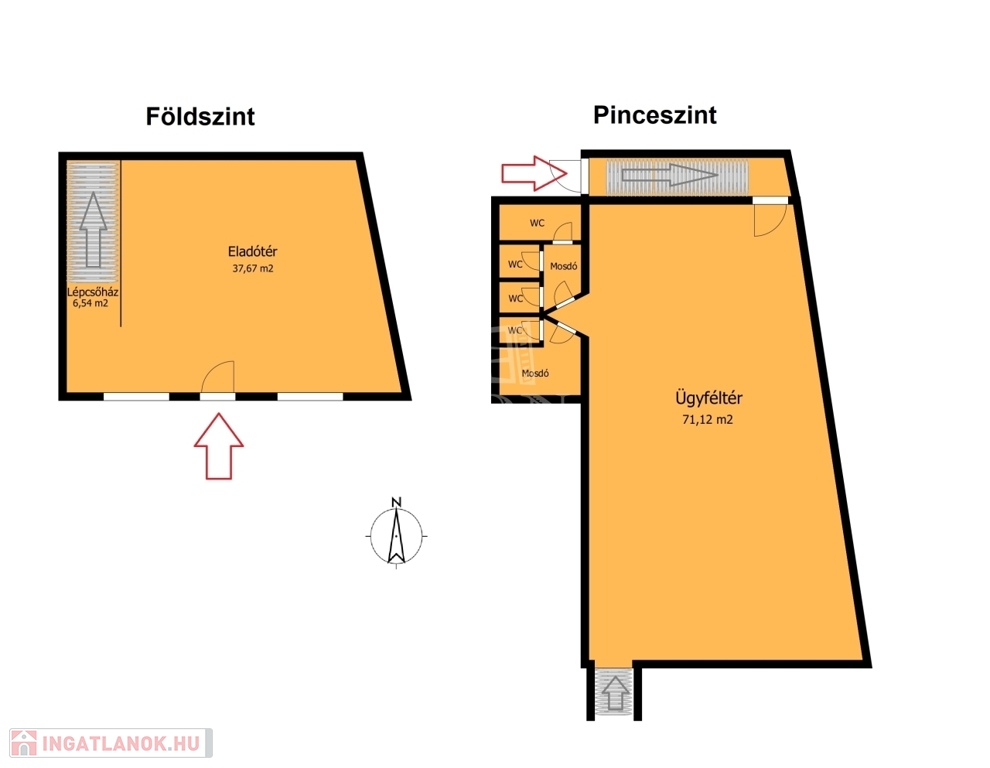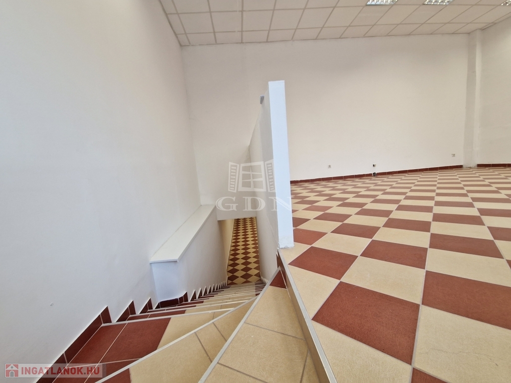 Az üzlet kirakattal és utcafronti bejárattal rendelkezik. A földszinten 44 m2, alagsorban 82 m2, összesen 126 m2 nettó alapterülettel.